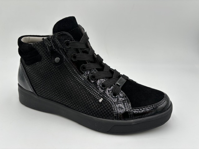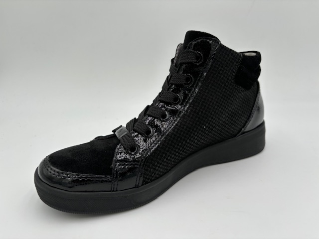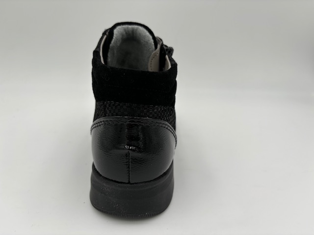 Haut lacet. Dessus cuir, nubuck et synthétique. Doublure synthétique. Première textile. Fermeture éclaire sur le côté. Semelle élastomère. Se cire pour le cuir. Se lave et se fait sécher à l'ombre pour le nubuck.