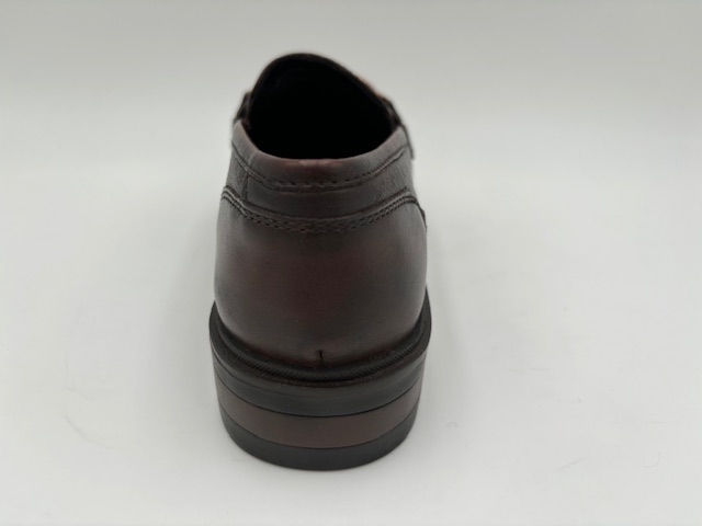 Mocassin. Dessus cuir. Doublure cuir. Première cuir. Elastiques sur les côtés. Semelle élastomère. Se cire.
