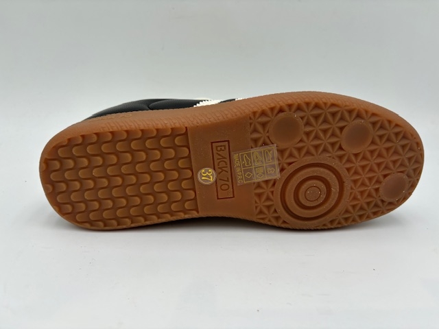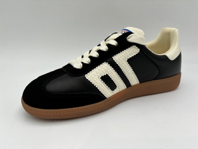 Tennis. Dessus cuir, nubuck et textile. Doublure textile. Première synthétique. Semelle élastomère. Se cire pour le cuir. Se lave et se fait sécher à l'ombre pour le nubuck et le textile.
