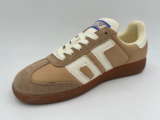 Tennis. Dessus cuir, nubuck et textile. Doublure textile. Première synthétique. Semelle élastomère. Se cire pour le cuir. Se lave et se fait sécher à l'ombre pour le nubuck et le textile.