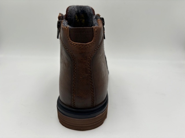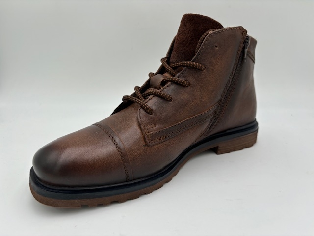 Haut lacet. Dessus cuir. Doublure textile. Première textile. Fermeture éclaire sur les côtés. Elastique à l'arrière. Semelle élastomère. Se cire.