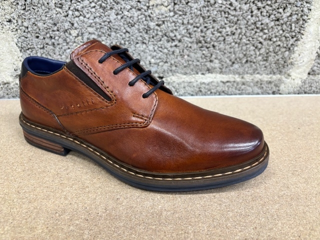 Lacet. Dessus cuir. Doublure cuir et textile. Première cuir et textile. Elastique sur les côtés. Semelle élastomère. Se cire.