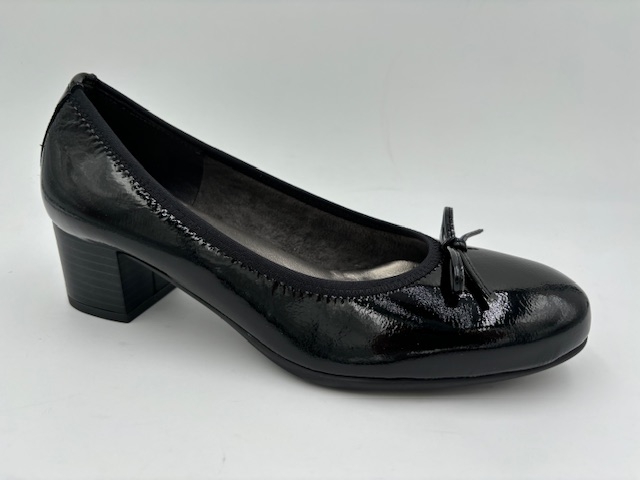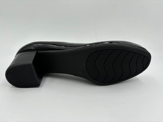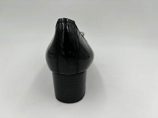 Talon. Dessus cuir vernis. Doublure cuir et textile. Première cuir. Semelle élastomère. S'entretient avec un chiffon humide.