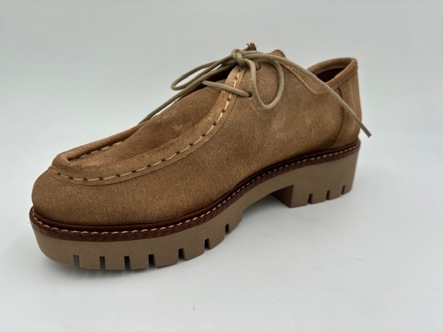 Lacet. Dessus nubuck. Doublure cuir. Première cuir. Semelle élastomère. Se lave et se fait sécher à l'ombre.