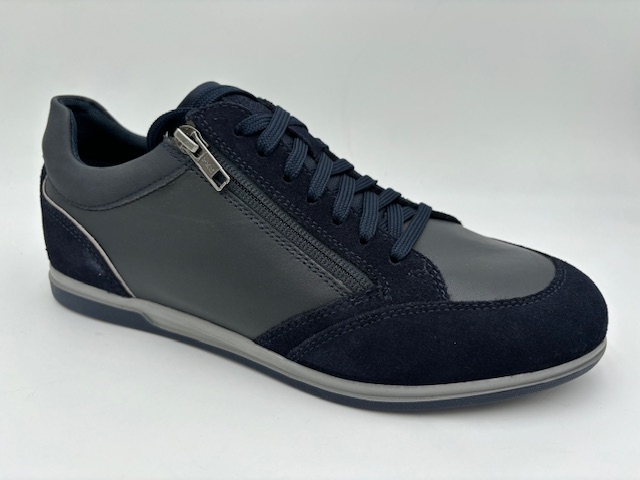 Lacet. Dessus cuir, nubuck et synthétique. Doublure textile. Première synthétique. Fermeture éclaire sur le côté. Semelle élastomère perforée Geox qui respire. Se cire pour le cuir. Se lave et se fait sécher à l'ombre pour le nubuck.