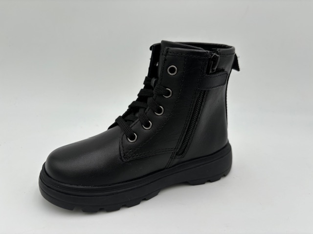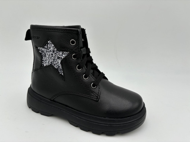 Haut lacet. Dessus cuir, textile et glitter. Doublure textile. Première cuir. Bon contrefort arrière. Fermeture éclaire sur le côté. Semelle élastomère perforée Geox qui respire. Se cire pour le cuir. Se lave et se fait sécher à l'ombre pour le textile.