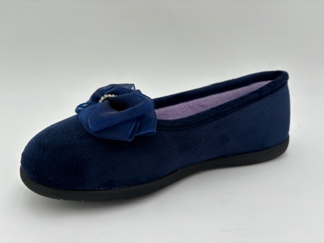 Ballerine. Dessus textile. Doublure textile. Première textile. Semelle cuir. Se lave et se fait sécher à l'ombre.
