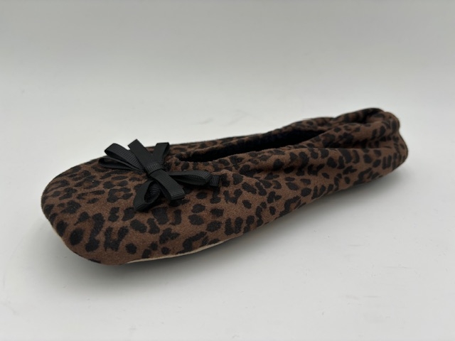 Ballerine. Dessus textile. Doublure textile. Première textile. Elastique autour du pied. Semelle cuir. Se lave et se fait sécher à l'ombre.