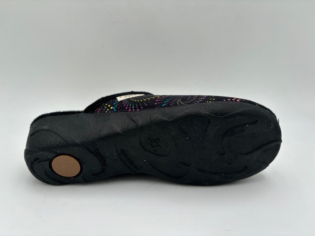 Pantouffles. Dessus textile. Doublure textile. Première textile. Semelle élastomère. Se lave et se fait sécher à l'ombre.