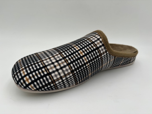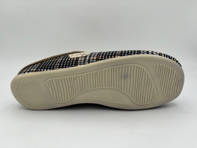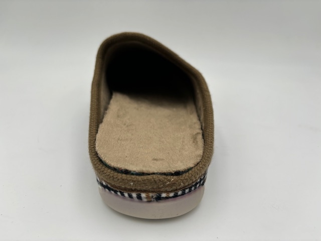 Pantouffles. Dessus textile. Doublure textile. Première textile. Semelle élastomère. Se lave et se fait sécher à l'ombre.