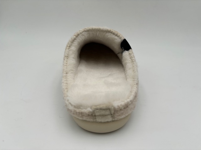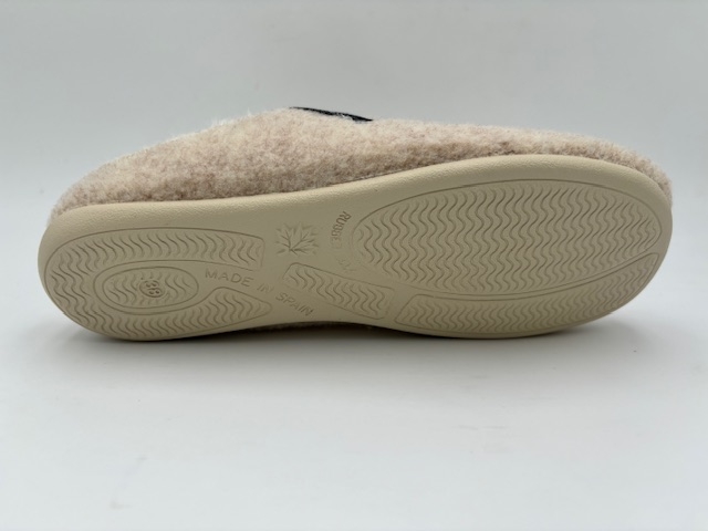 Pantouffles. Dessus textile. Doublure textile. Première textile. Semelle élastomère. Se lave et se fait sécher à l'ombre.