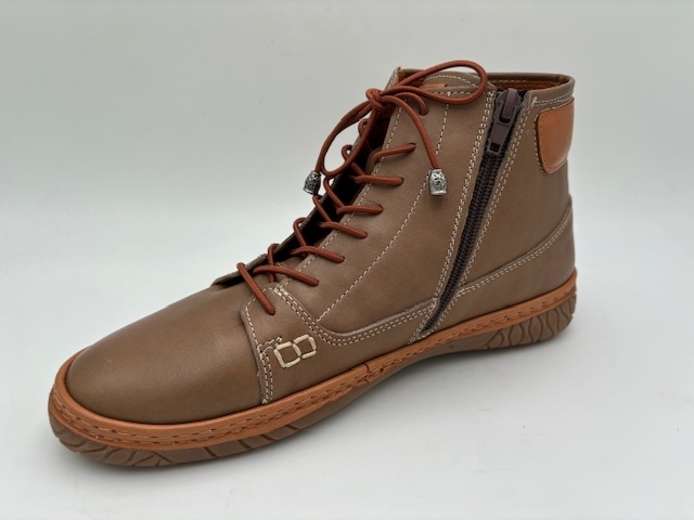 Haut lacet. Dessus cuir. Doublure cuir. Première cuir. Fermeture éclaire sur le côté. Semelle élastomère. Se cire.