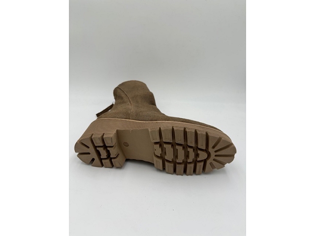 Bottines. Dessus nubuck. Doublure cuir. Première cuir. Fermeture éclaire à l'arrière. Semelle élastomère. Se lave et se fait sécher à l'ombre.