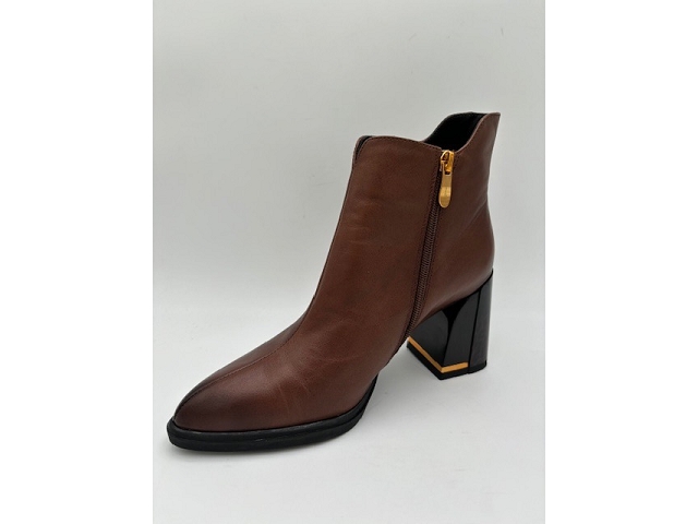 Bottines. Dessus cuir. Doublure textile. Première textile. Fermeture éclaire sur le côté. Semelle élastomère. Se cire.
