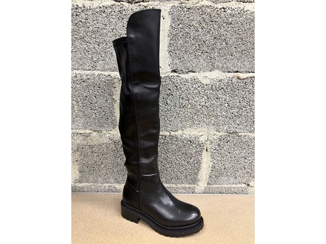 Botte. Dessus cuir. Doublure textile. Première cuir. Fermeture éclaire sur le côté. Elastique à l'arrière. Semelle élastomère. Se cire.
