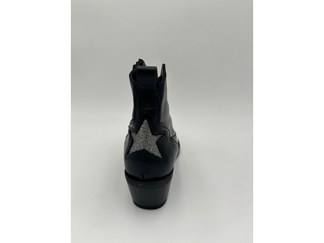 Bottines. Dessus cuir et glitter. Doublure cuir. Première cuir. Fermeture éclaire sur le côté. Semelle élastomère. Se cire.