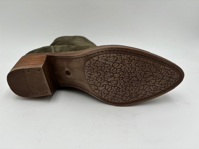 Bottines. Dessus cuir et nubuck. Doublure cuir. Première cuir. Fermeture éclaire sur le côté. Semelle élastomère. Se cire pour le cuir. Se lave et se fait sécher à l'ombre pour le nubuck.
