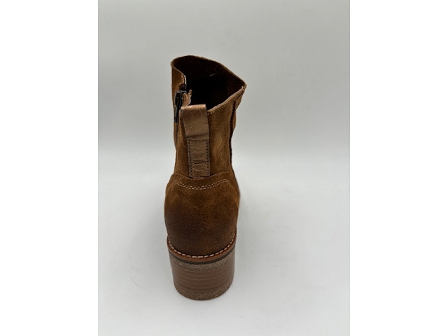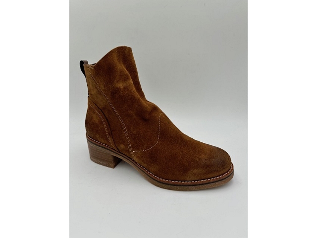 Bottines. Dessus cuir et nubuck. Doublure cuir. Première cuir. Fermeture éclaire sur le côté. Semelle élastomère. Se cire pour le cuir. Se lave et se fait sécher à l'ombre pour le nubuck.