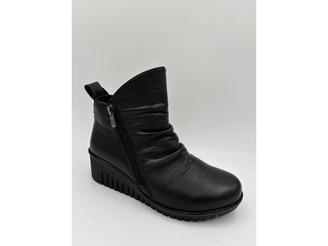 Bottines. Dessus cuir. Doublure textile. Première cuir. Fermeture éclaire sur le côté. Semelle élastomère. Se cire.