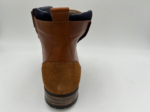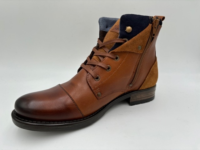 Haut lacet. Dessus cuir, nubuck et textile. Doublure textile. Première cuir. Fermeture éclaire sur le côté. Semelle élastomère. Se cire pour le cuir. Se lave et se fait sécher à l'ombre pour le nubuck et le textile.