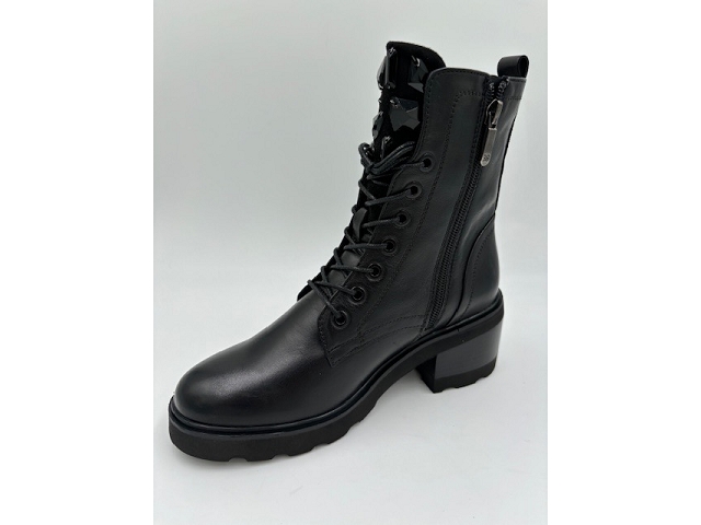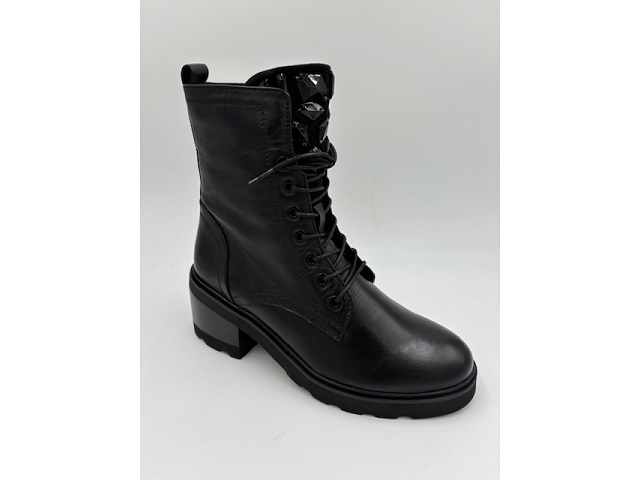 Haut lacet. Dessus cuir, nubuck et textile. Doublure textile et synthétique. Première cuir. Fermeture éclaire sur le côté. Semelle élastomère. Se cire pour le cuir. Se lave et se fait sécher à l'ombre pour le nubuck et le textile.