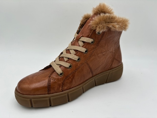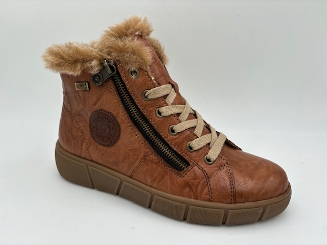 Haut lacet. Dessus cuir et textile. Doublure textile. Première textile. Fermeture éclaire sur le côté. Semelle élastomère. Se cire pour le cuir. Se lave et se fait sécher à l'ombre pour le textile.