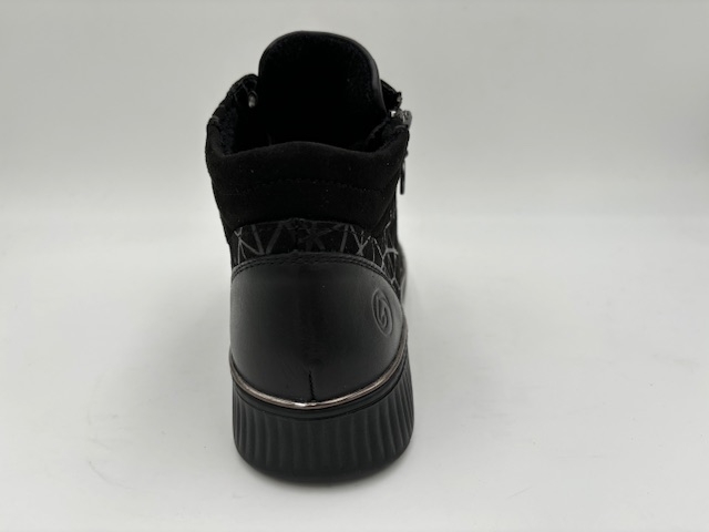 Haut lacet. Dessus cuir, nubuck et textile. Doublure textile. Première textile. Fermeture éclaire sur le côté. Semelel élastomère. Se cire pour le cuir. Se lave et se fait sécher à l'ombre pour le nubuck et le textile.