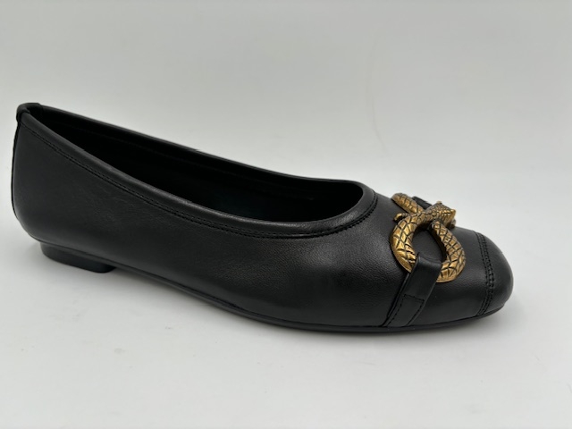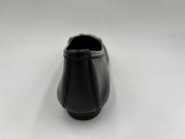 Ballerine. Dessus cuir. Doublure cuir. Première cuir. Semelle élastomère. Se cire.
