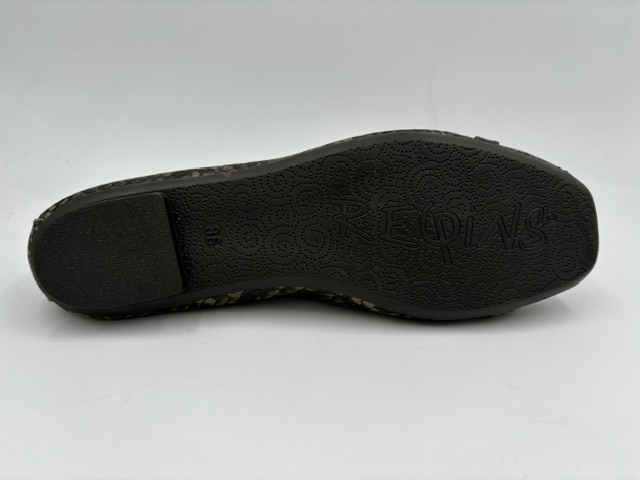 Ballerine. Dessus cuir. Doublure cuir. Première cuir. Semelle élastomère. Se cire.