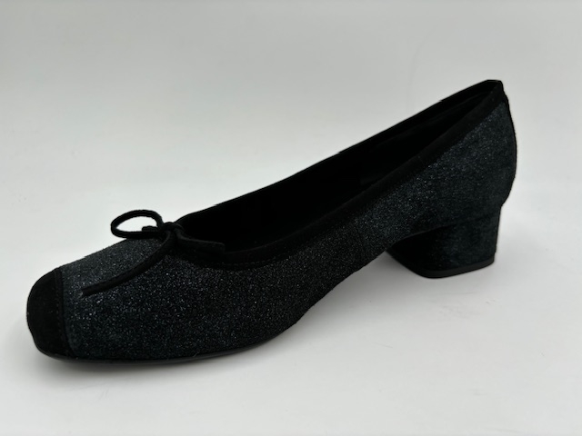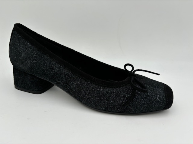 Mocassin. Dessus nubuck et glitter. Doublure cuir. Première cuir. Semelle élastomère. Se lave et se fait sécher à l'ombre pour le nubuck.
