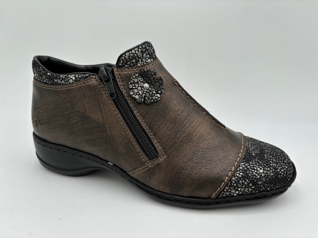 Bottines. Dessus cuir et synthétique. Doublure textile. Première cuir. Fermetures éclaires sur les côtés. Semelle élastomère. Se cire pour le cuir.