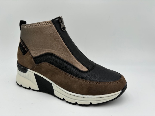 Bottines. Dessus textile et synthétique. Doublure textile. Première textile. Elastique autour du pied. Fermeture éclaire sur le devant du pied. Semelle élastomère. Se lave et se fait sécher à l'ombre pour le textile.