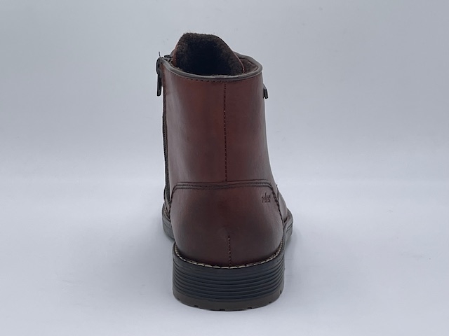 Haut lacet. Dessus cuir. Doublure textile. Première textile. Fermeture éclaire sur le côté. Semelle élastomère. Se cire.