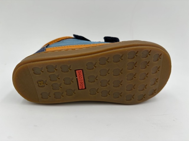 Scratch montant. Dessus cuir, nubuck et textile. Doublure cuir. Première cuir. Bon contrefort arrière. Voute plantaire. Fermeture avec scratchs sur le coup de pied.  Semelle élastomère. Se cire pour le cuir. Se lave et se fait sécher à l'ombre pour le nubuck et le textile.