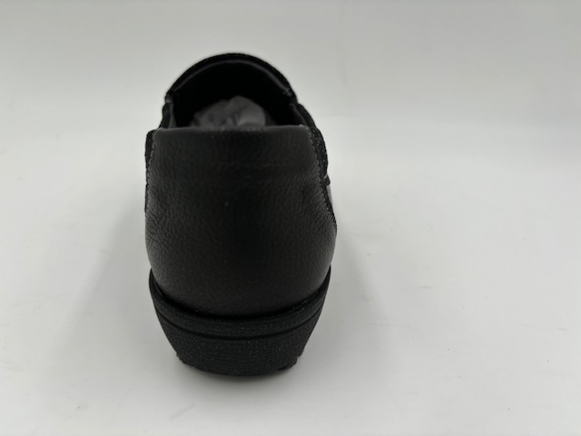 Mocassin. Dessus cuir. Doublure textile. Première textile. Elastiques sur les côtés. Semelle élastomère. Se cire.
