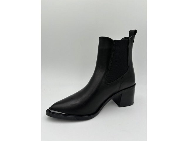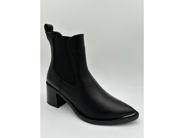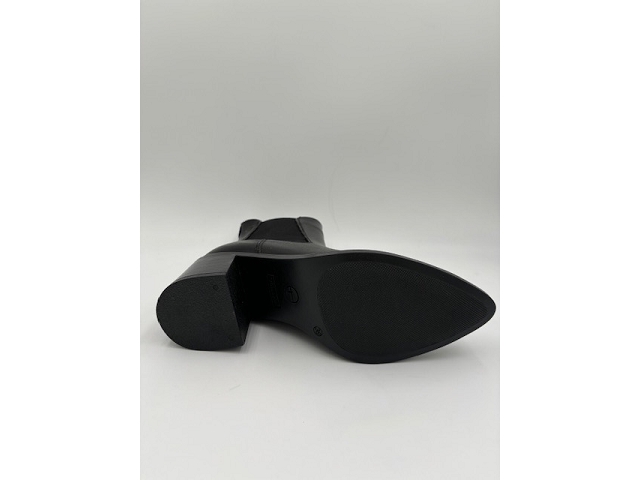 Bottines. Dessus cuir. Doublure textile. Première synthétique. Elastiques sur les côtés. Semelle élastomère. Se cire.