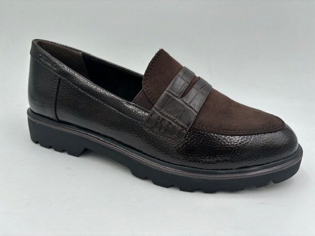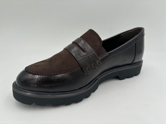 Mocassin. Dessus nubuck et synthétique. Doublure textile et synthétique. Première synthétique. Elastiques sur les côtés. Semelle élastomère. Se lave et se fait sécher à l'ombre pour le nubuck.