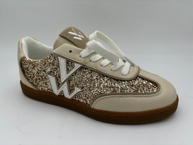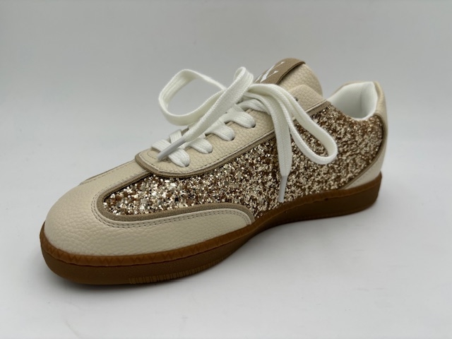 Tennis. Dessus glitter et synthétique. Doublure textile. Première textile. Semelle élastomère.