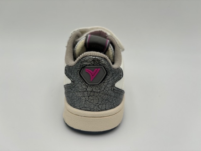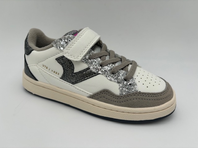 Tennis. Dessus synthétique et glitter. Doublure textile. Première textile. Bon contrefort arrière. Fermeture avec scratch sur le coup de pied. Elastique sur le coup de pied. Semelle élastomère.